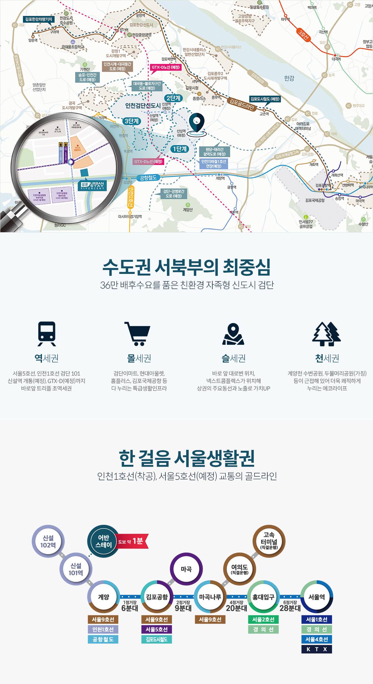 검단신도시의 압도적인 미래 비전 수도권 서북부의 중심지로 도약하는 검단의 핵심 입지 교통 호재와 대규모 인프라 확충이 예정된 검단신도시의 관문에서 지속적인 가치 상승이 기대되는 미래 주거의 중심입니다. 수변 공원을 품은 쾌적한 힐링 라이프 내 집 앞에서 누리는 수변 산책로와 녹지 공간의 여유 단지와 인접한 수변 공원을 통해 도심 속에서도 자연을 가까이 느끼는 친환경적인 생활 환경을 제공합니다. 서울과 빠르게 통하는 쾌속 교통망 인천 1호선 연장 및 광역 교통망 확충으로 더 빨라진 이동 서울 접근성이 획기적으로 개선되는 교통 호재를 통해 직주근접과 광역 이동의 편리함을 동시에 누리는 최적의 교통을 자랑합니다. 공간의 품격을 높이는 특화 설계 트렌디한 감각과 실용성을 겸비한 어반 라이프 스타일 입주민의 편의를 최우선으로 고려한 효율적인 공간 설계로 일상의 만족도를 극대화하는 세련된 주거 공간을 구현했습니다. 생활의 모든 것을 갖춘 인프라 중심상업지구와 교육 시설을 한 걸음에 누리는 편리함 단지 인근에 형성된 상업 시설과 풍부한 편의 인프라를 통해 멀리 나가지 않아도 모든 것이 해결되는 원스톱 라이프가 가능합니다. 검단 어반스테이만의 특별한 가치 안정적인 주거 환경과 투자의 희소성을 담은 프리미엄 브랜드만의 노하우가 집약된 단지 구성으로 실거주 만족도는 물론 자산 가치까지 고려한 완벽한 선택지가 될 것입니다.